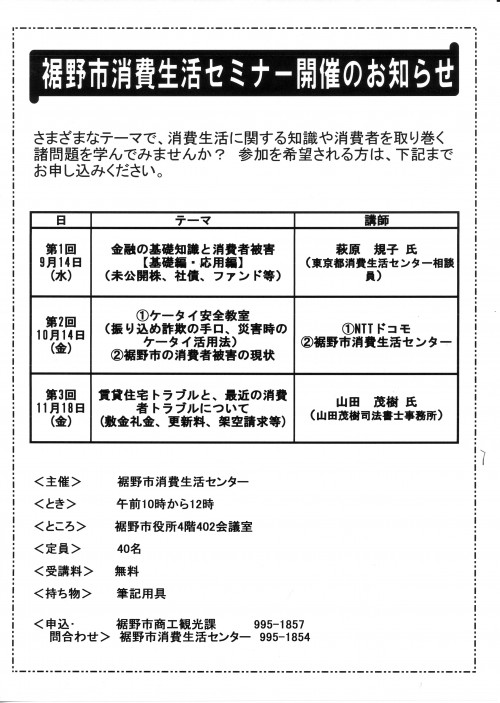 消費生活セミナー開催